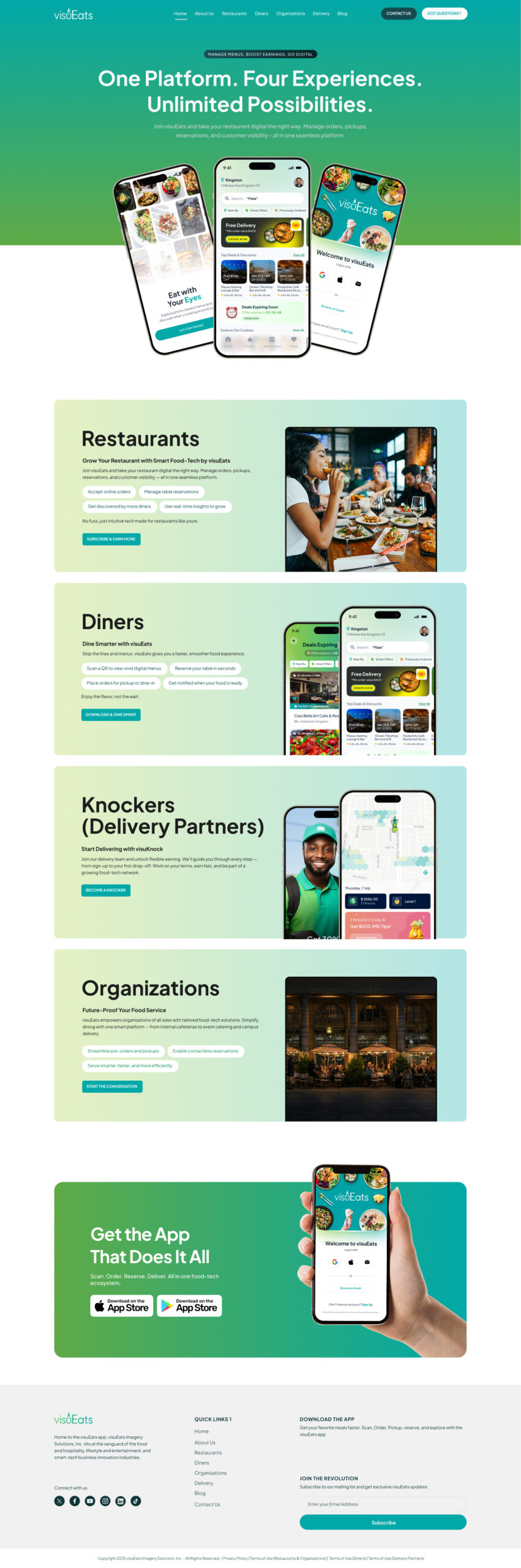 The redesigned experience offers a smoother, more immersive way to explore food. visuEats now stands out with a strong visual identity, a modern app interface, and a user journey designed to encourage browsing, discovery, and conversion.