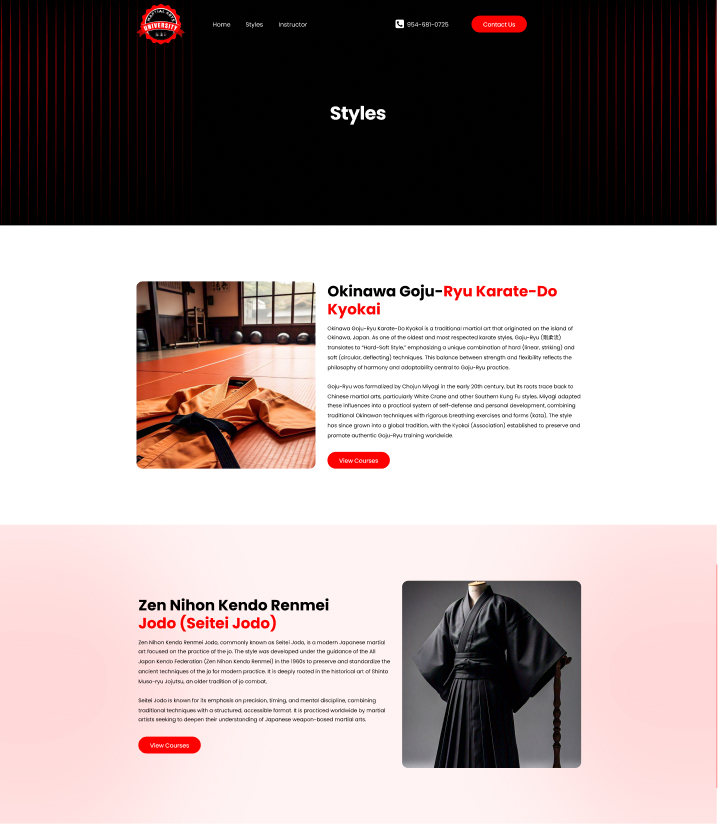 We used strong lines and disciplined layouts reflecting the structure of martial arts training. The color scheme uses grounded tones—deep greys, subtle reds or golds—to evoke seriousness and reliability. Photography and icons are used to bring energy and personality into the platform, while minimalist design components ensure a professional, modern experience.