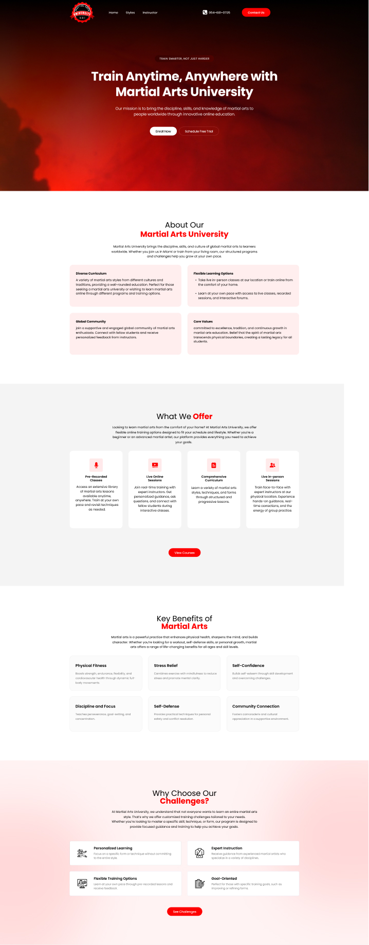 Martial Arts University is a hybrid platform offering both online and in-person martial arts training, led by expert instructors across multiple styles. Our mission was to design their web presence and develop the platform on WordPress to provide smoother navigation, better course discovery, and stronger brand trust.